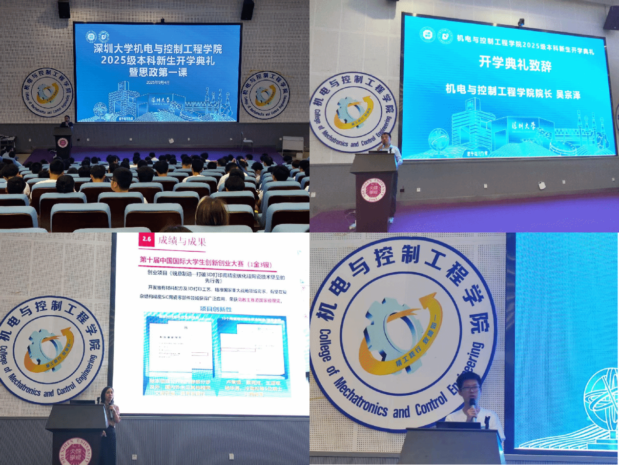 在致腾楼报告厅举行2025级本科新生开学典礼。学院院长吴宗泽、党委书记郑纯、党委副书记邓琳、副院长娄燕、院长助理徐斌、机械系主任赖志慧、自动化系主任陈宏、本科2025级班主任老师、辅导员老师出席,邓琳主持典礼。