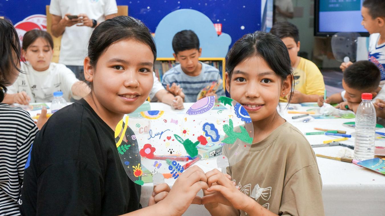 精工疗愈主题工坊则将艺术创作与心理健康教育相结合,让孩子们用丙烯笔在扇面上勾勒“我的世界”,从卡通形象到家庭场景,每一把扇子都成为独一无二的情绪表达载体。完成作品的孩子们拿着专属扇子,与新认识的小伙伴分享创作故事。