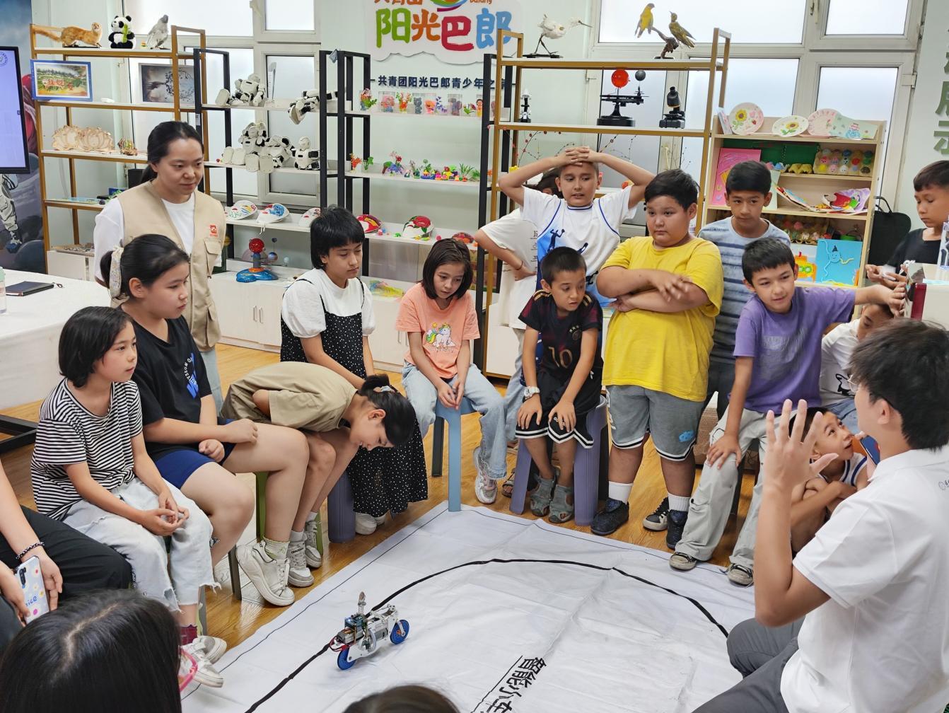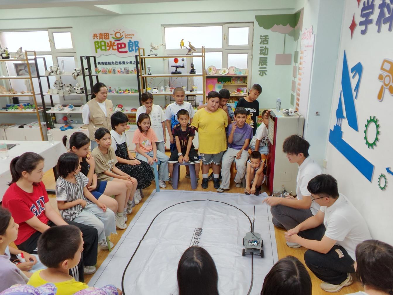学院臻工创新党支部党员、智能车俱乐部硬件技术顾问、实践队员许捷成通过沉浸式体验环节,带领孩子们揭开智能小车的神秘面纱。从常见的汽车到会“思考”的智能车,现场演示“无人控制驾驶”,让孩子们直观感受传感器如何让车辆实现自主按照规划路线前进;同步讲解陀螺仪与平衡算法的协作机制,让无人两轮车、独轮车在地上保持平衡,哪怕受到干扰也不会倒下,引发阵阵惊呼。